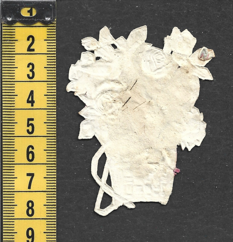 Rozenmand met duiven antiek poezieplaatje met zijde (745)
