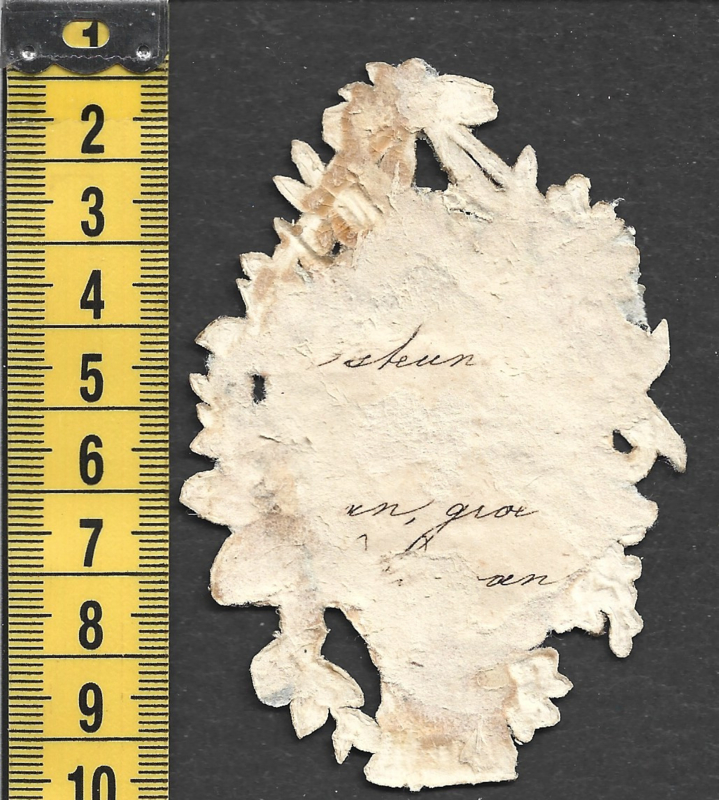Viooltjesmand met duif antiek poezieplaatje met zijde (746)