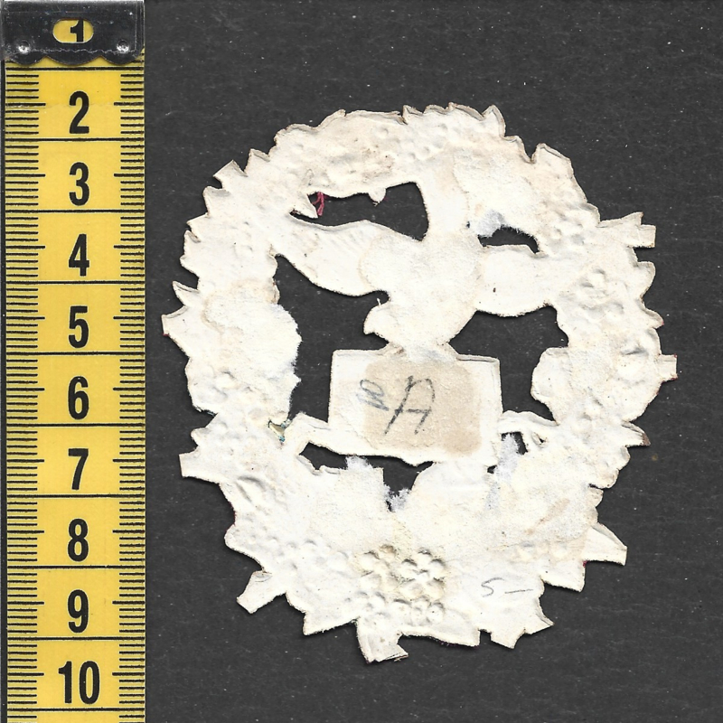 Bloemenkrans met duif antiek poezieplaatje met zijde (749)