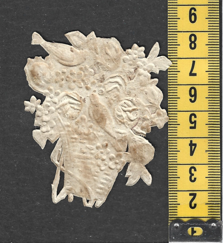 Mandje met bloemen en Duif antiek poezieplaatje met zijde (822)