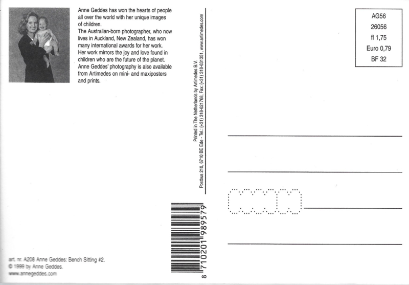 Anne Geddes kaart nr. A208: Zitten op het Tuinbankje #2