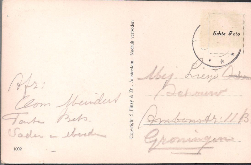 S.Finsy & zn. Amsterdam. De kaart is in zeer goede beschreven staat.