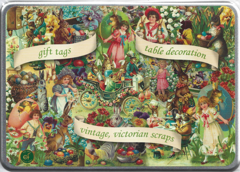 Poezieplaatjes blik vol met hangers, decoratie PASENPoëzieplaatjes blik met meer dan 45 stuks aan hangers, tafeldecoratie, geschenkhangers, grote poëzieplaat kaarten die kunnen staan.