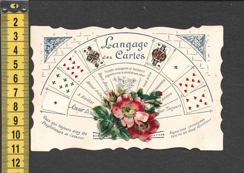 Zwaluw uitklapplaatje - Frans - poezieplaatjes antieke kaart (293)Zie foto's, plaatje kan je aan het koordje naar voren trekken. Helaas zijn twee vleugelpunten wat beschadigd.