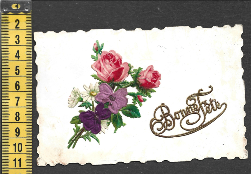 Viooltjes boeket - Frans Eugene - poezieplaatjes antieke kaart (301)Zie foto's, met glitters en beschreven