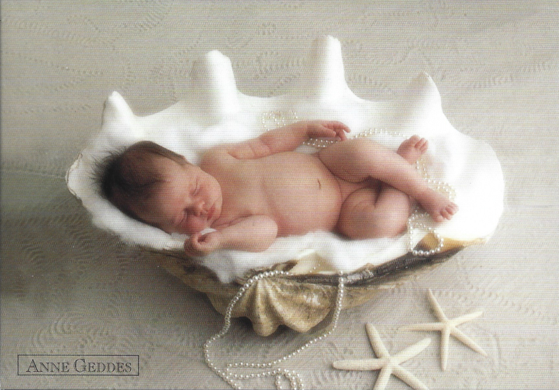 Anne Geddes kaart nr. A207: Oester schelp baby #2De kaart is nieuw. Afmeting 15 x 10 cm.De kaart weegt 5 gram en kan door de brievenbus.
