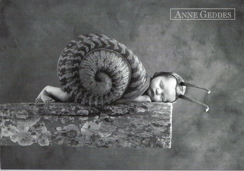 Anne Geddes kaart nr. A213: Slakken in pot #1De kaart is nieuw. Afmeting 15 x 10 cm.De kaart weegt 5 gram en kan door de brievenbus.